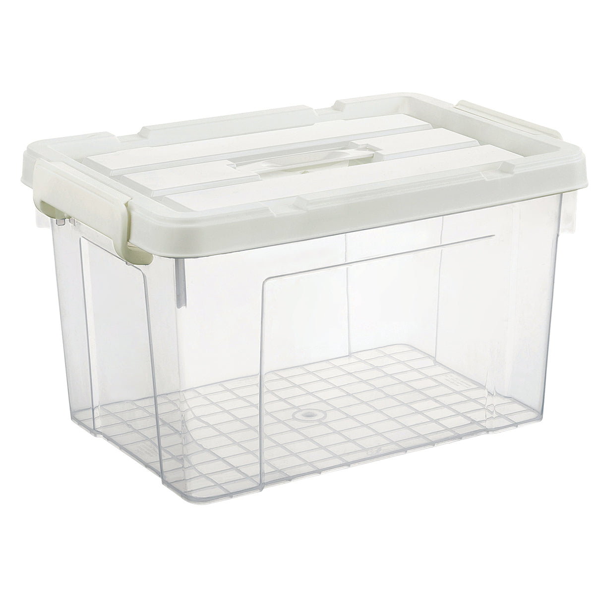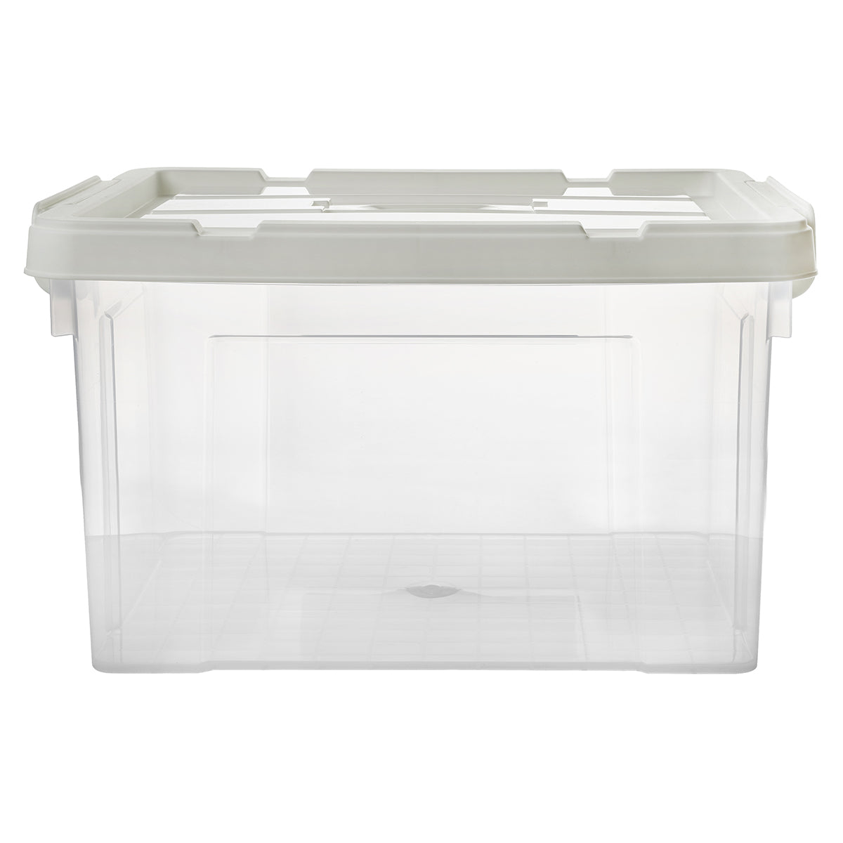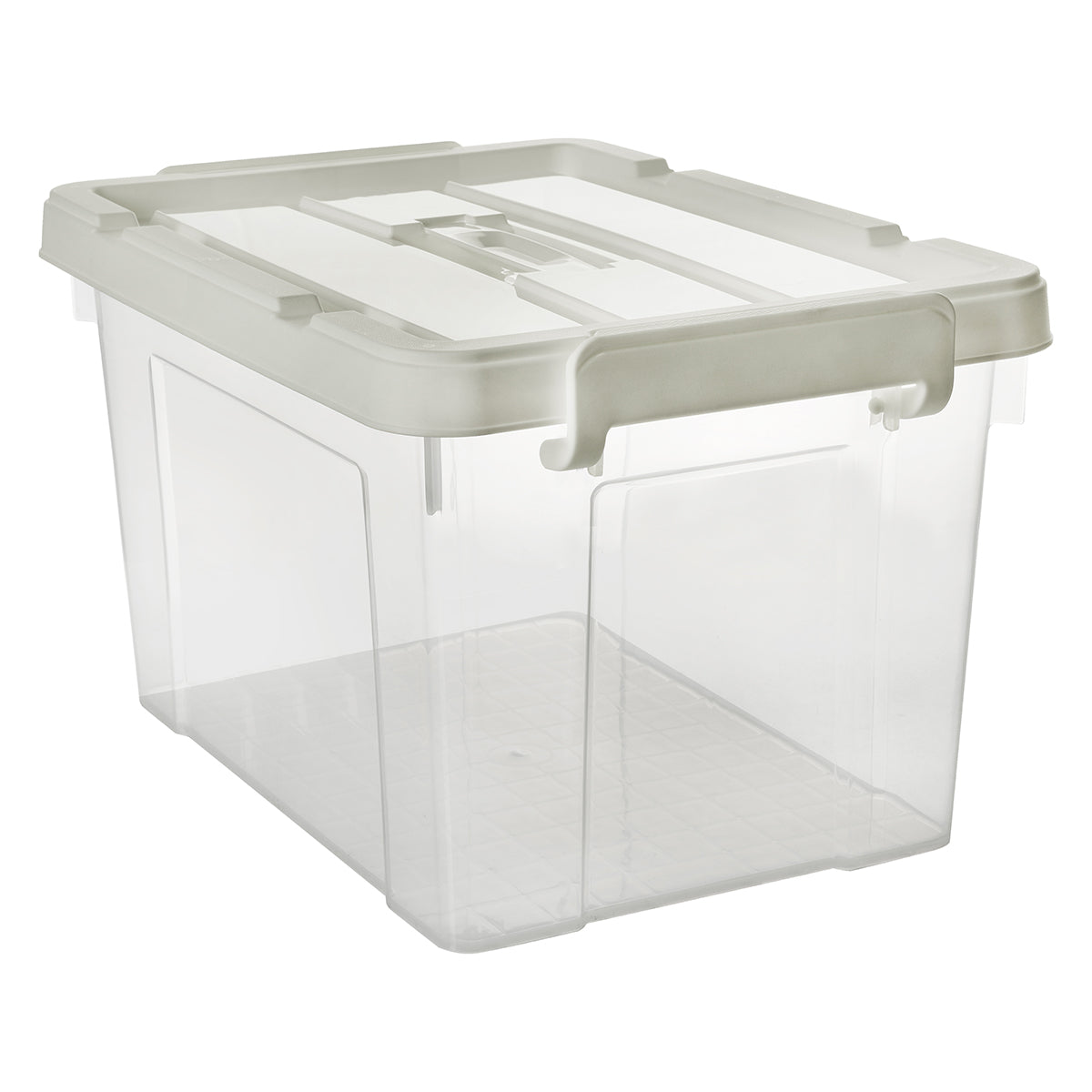 "Caja de almacenamiento con tapa y asas de seguridad Transparente Cap 25 L."