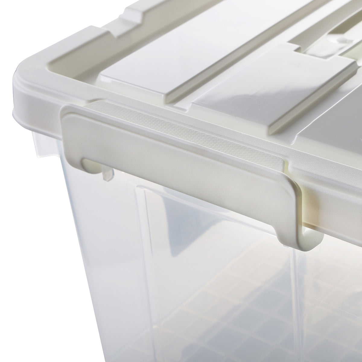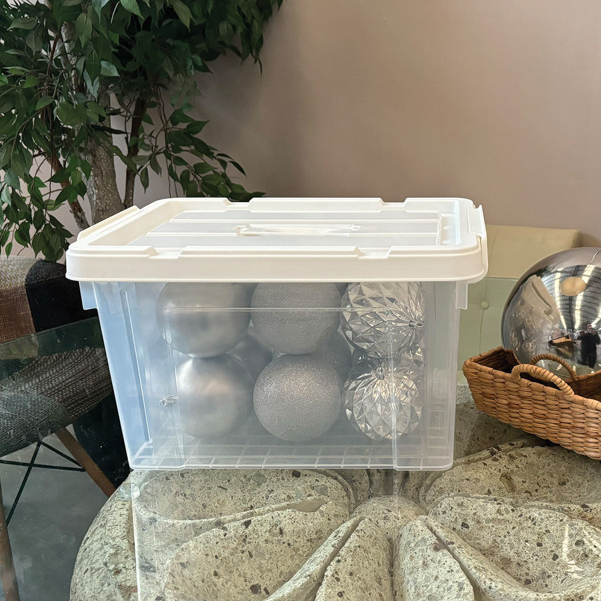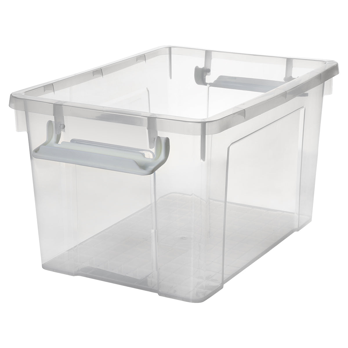 "Caja de almacenamiento con tapa y asas de seguridad Transparente Cap 25 L."