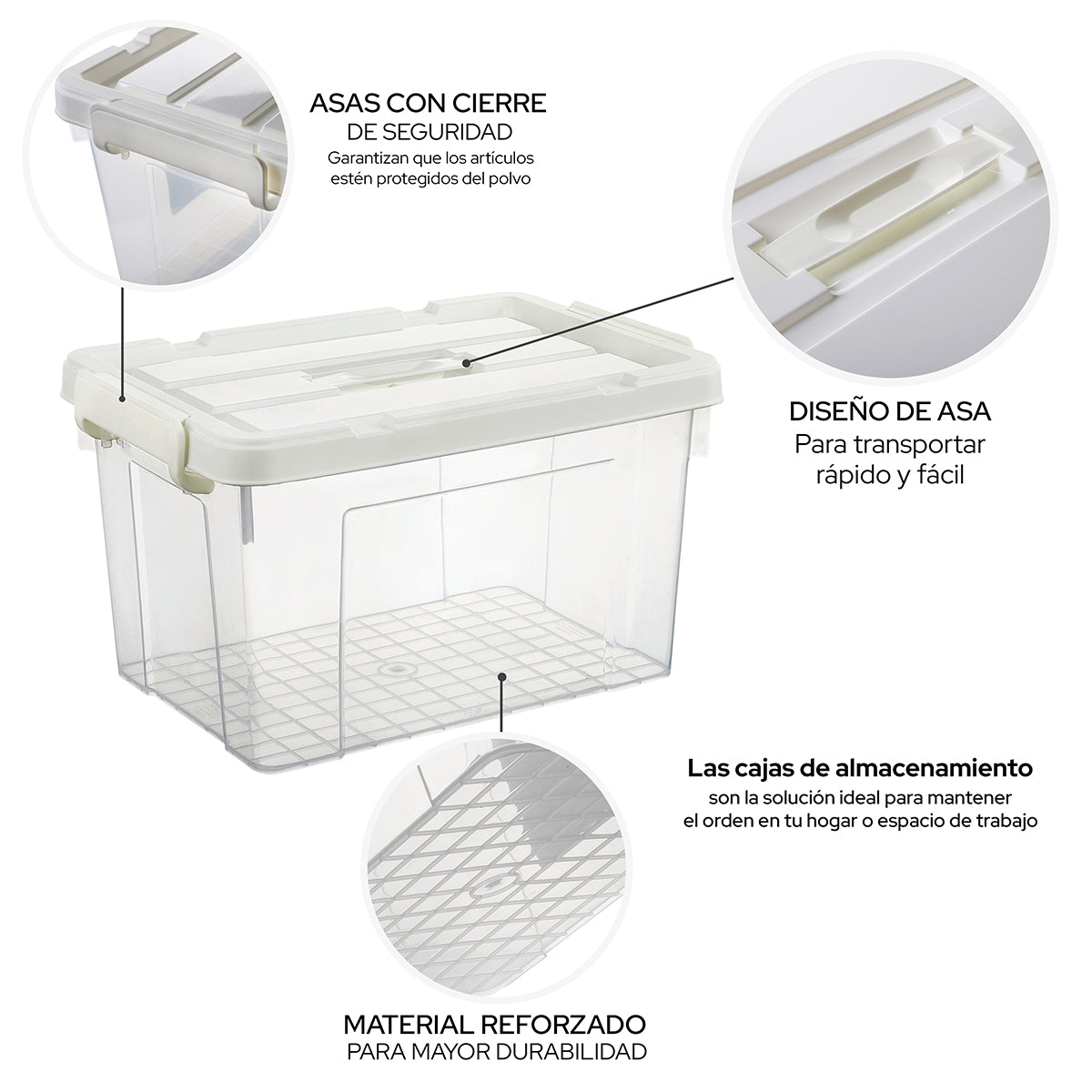 Diseño semitransparente: Permite ver el contenido sin necesidad de abrir la caja, facilitando la identificación rápida de los artículos almacenados.