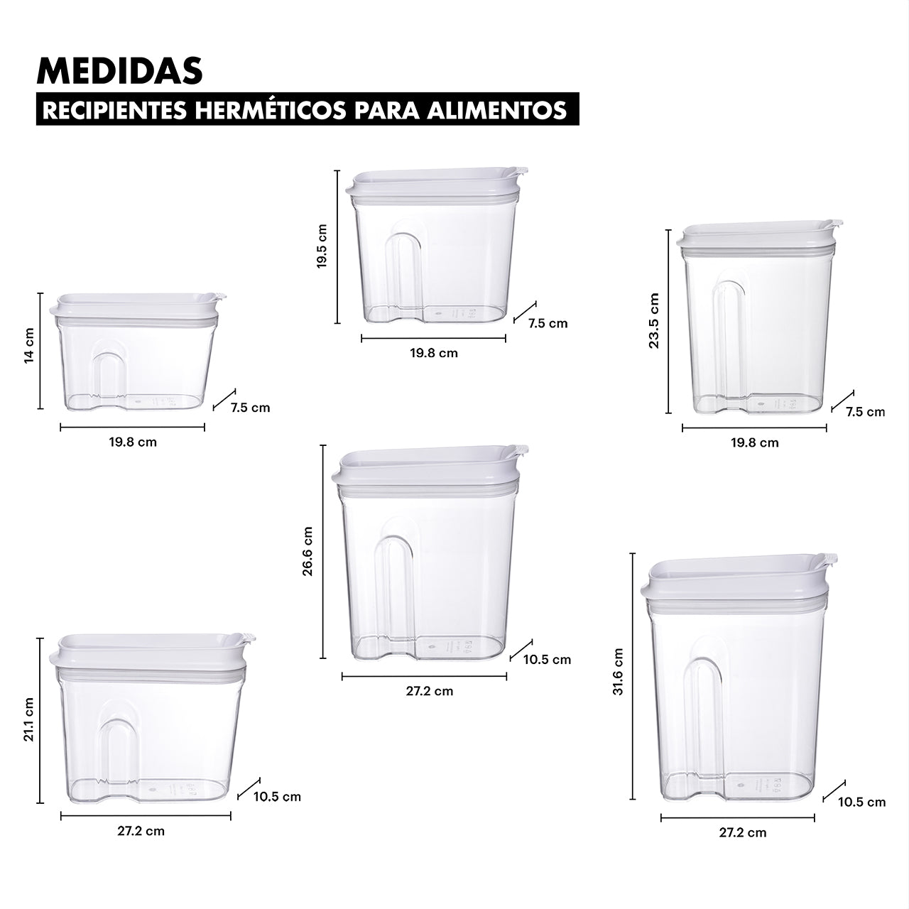 Set de 6 Contenedores Herméticos Cerealeros Blanco | AG Box